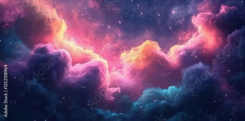© NpicArt, Fototapeta premium A beautiful celestial landscape filled with colorful vibrant clouds and stars