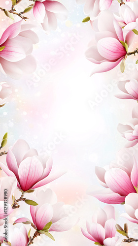 Naklejka premium A beautiful clean copy space framed by delicate pink and white magnolia flowers, creating a soft and inviting atmosphere for text or design elements