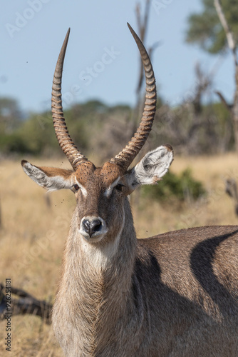 © Anna, Fototapeta premium A beautiful closeup portrait of a male waterbuck in Kruger National Park.