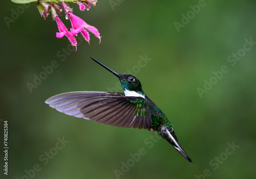 Fototapeta premium A Beautiful Collared Inca Hummingbird Feeding on Flower Nectar