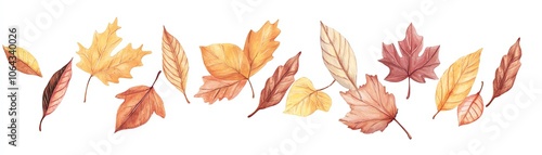© ธนากร บัวพรหม, Obraz premium A beautiful collection of autumn leaves in vibrant hues of orange, yellow, and red, showcased against a white background.
