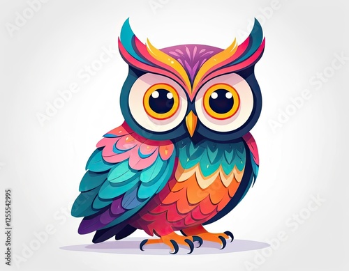 Fototapeta premium A beautiful colorfull flat owl on a pure white background. illustration