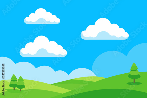 © Radha Rani, Fototapeta premium A Beautiful Day In The Countryside With Fluffy White Clouds And Rolling Green Hills