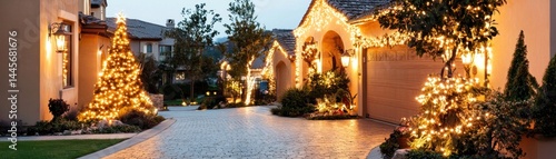 © Berkah1789, Obraz premium A Beautiful Decorated House Lit Up With Holiday Lights