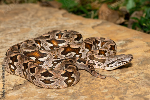 © Craig, Obraz premium A beautiful Dumeril's boa (Acrantophis dumerili), coiled on a large rock. A non-venomous snake endemic to Madagascar