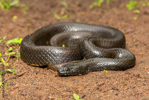Fototapeta premium A beautiful dusky-bellied water snake (Lycodonomorphus laevissimus) near a...
