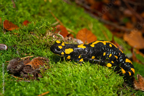 Fototapeta premium A beautiful fire salamander in the forest