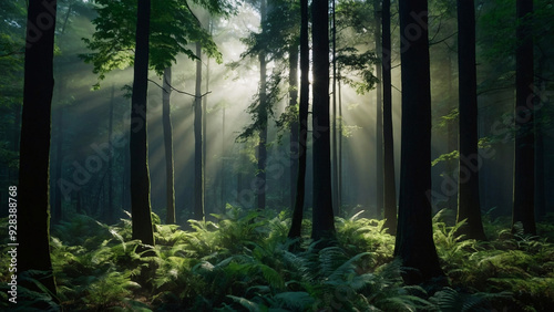 © Piya, Obraz premium A Beautiful Forest Bathed in Realistic Light