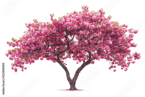 © Vibudhaart, Naklejka premium A beautiful, full-bloom pink cherry blossom tree, isolated on a transparent background background removed