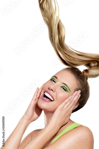 Obraz premium a beautiful girl showing long windy hair