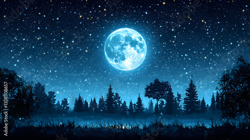 Naklejka premium A beautiful glowing moon shining over the forest at night time