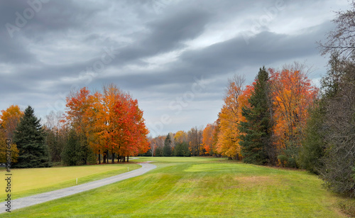 © Jim Cumming, Naklejka premium A beautiful golf course on a cool cloudy autumn day in Canada