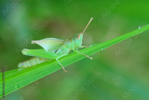 © Budi, Fototapeta premium a beautiful grasshopper finished molting, macro photography, close up, insect.