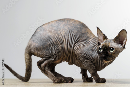© peterkocherga, Obraz premium A beautiful gray sphinx cat