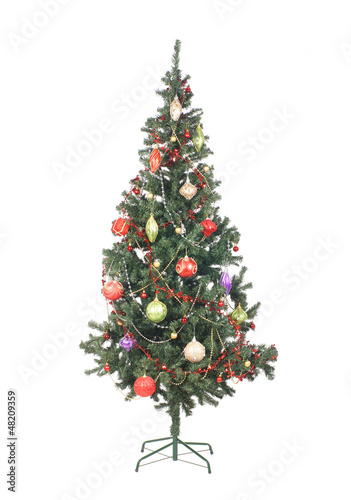 © Acronym, Obraz premium A beautiful green Christmas tree covered with toys and balls