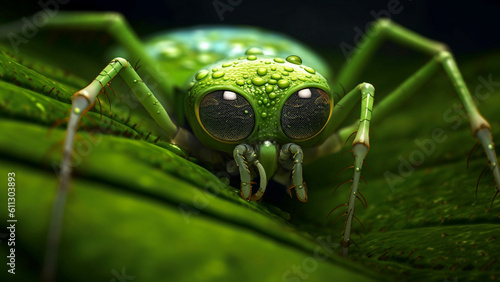 © Longg, Fototapeta premium a beautiful green spider is sitting on a leaf. Generative AI.