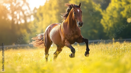 © PFU, Obraz premium A beautiful horse galloping across a sunny field, natural sunlight