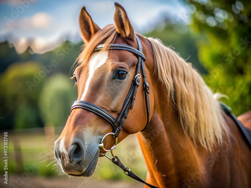 © Ольга, Fototapeta premium A beautiful horse in close-up outdoors.