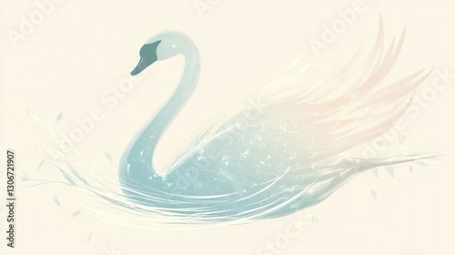 © isend, Fototapeta premium A beautiful illustrated swan floats gracefully amidst delicate flowing details