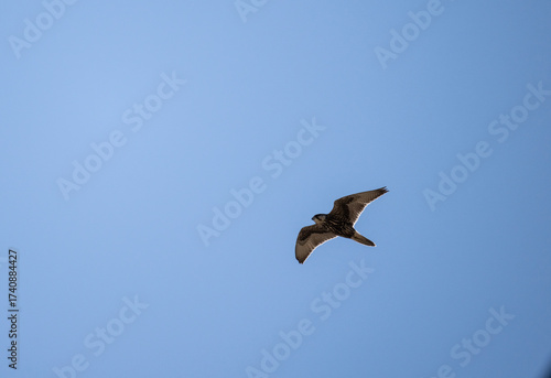 © константин константи, Obraz premium A beautiful kestrel in its natural habitat in the Altai steppes on an autumn day