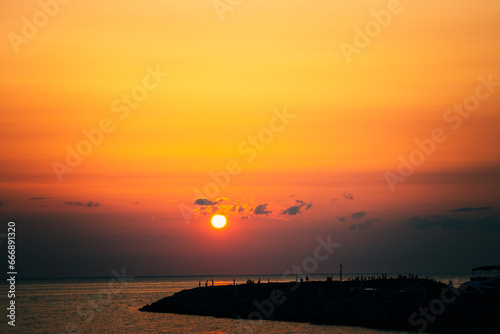 Fototapeta premium A beautiful Öland sunset, with colorful skies and the setting sun over calm waters