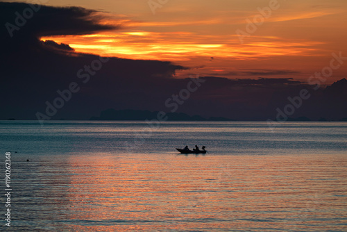 © Cavan, Naklejka premium a beautiful landscape in nature with sky and lake of a boat