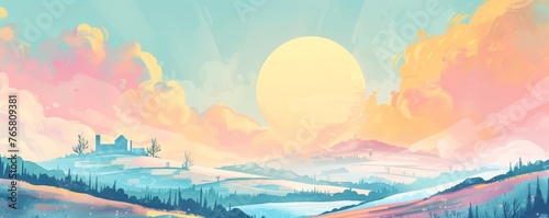 © Exnoi, Fototapeta premium A beautiful landscape with a bright blue sky and fluffy clouds