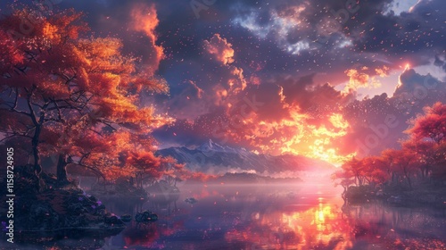 © Siyam, Naklejka premium A beautiful landscape with a sunset in the background