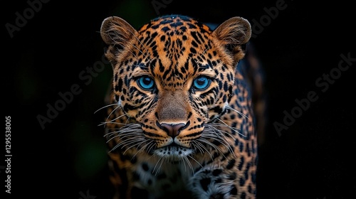Obraz premium A Beautiful Leopard Posing With Intense Blue Eyes Looking Forward