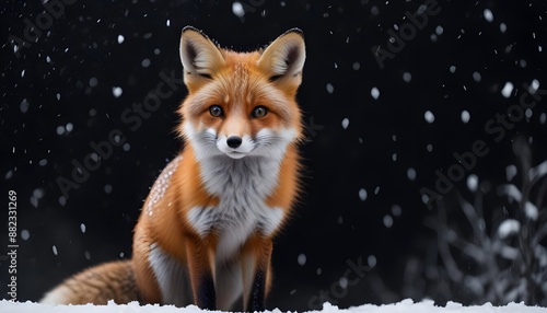 Obraz premium A beautiful little fox with dark black background while snowfall
