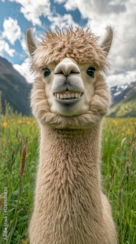 Obraz premium A beautiful longhaired person with flowing hair showing a joyful expression...
