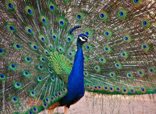 Naklejka premium A Beautiful Male Peacock Displays his Plumage