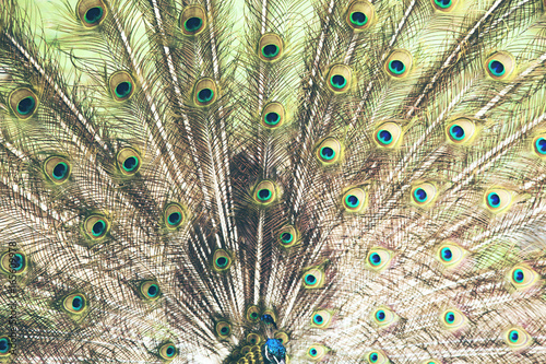 © ARAMYAN, Fototapeta premium A beautiful male peacock with expanded feathers