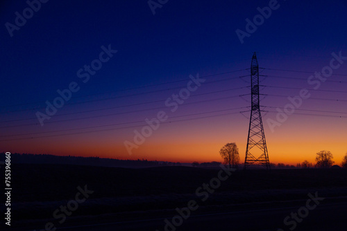 © dachux21, Fototapeta premium A beautiful morning scenery of an industrial construction against the sky. Early winter scenery of Northern Europe.