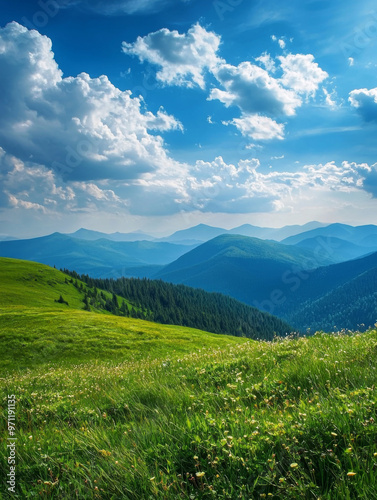 © alfa27, Fototapeta premium A beautiful mountain landscape with a clear blue sky