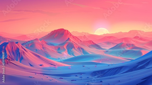 © Chayan, Fototapeta premium A beautiful mountain range with a pink and blue sky