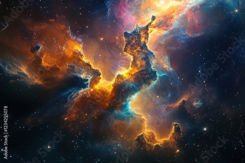 Fototapeta premium A beautiful nebula with many vibrant colors and space in the background astronomy universe interstellar.
