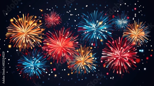 Naklejka premium A beautiful night sky filled with colorful fireworks. The perfect backdrop for a celebration.
