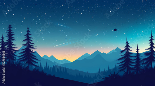 © Thiago, Naklejka premium A beautiful night sky filled with stars, planets. Aurorae. Illustration
