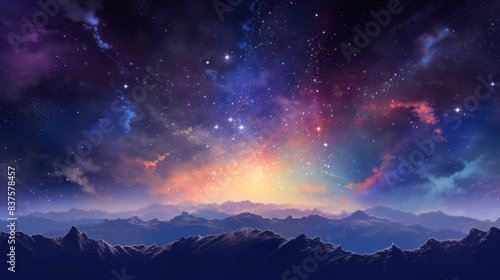 Naklejka premium A beautiful night sky with a mountain range in the background