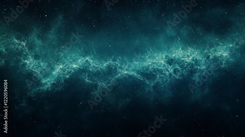© El Media, Fototapeta premium A beautiful northern lights sky with stars. The color of the aurora is blue-green, and it has an ethereal glow that reflects off the dark night sky.