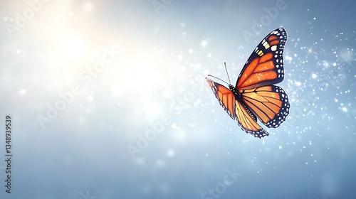 © Ibrahim, Fototapeta premium A beautiful orange and black butterfly floating in the light