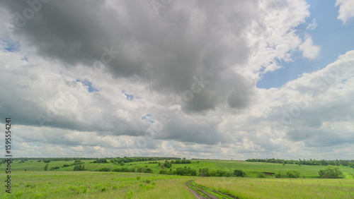 Obraz premium A Beautiful Overcast Landscape Featuring Lush Green Fields That Captivates...