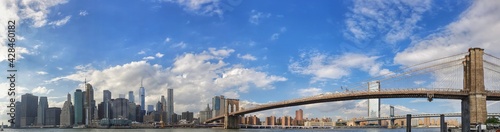 © Pornprasert, Naklejka premium A beautiful panoramic photo of New York city skyline on sunshine day with beautiful blue clear sky.