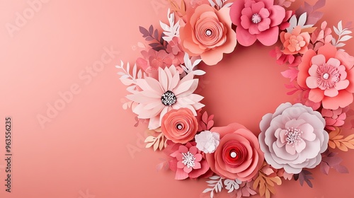 Naklejka premium A beautiful paper flower wreath in soft pink hues, perfect for decoration or...