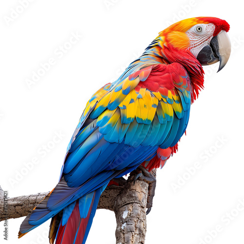 © Karn AS Images, Fototapeta premium A beautiful parrot with red, blue, and yellow feathers is perched on a branch.