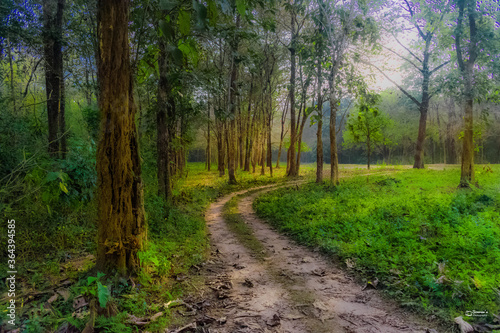 © Sourav, Fototapeta premium A Beautiful Path leading its way into the forest.