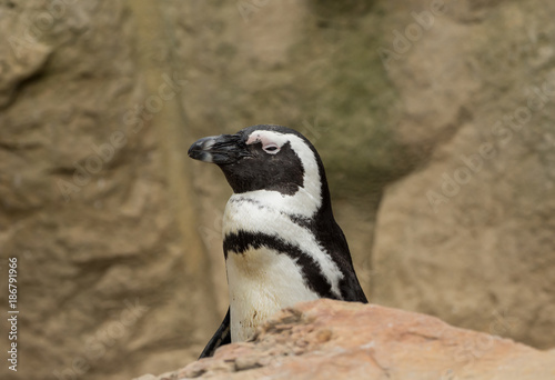 © sandradombrovsky, Fototapeta premium A beautiful penguin with a soft background