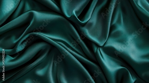© Rere_Art151, Obraz premium A beautiful piece of teal colored silk fabric gracefully flowing