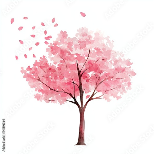 © padungsak, Fototapeta premium A beautiful pink flowering tree with petals falling gently, symbolizing spring and renewal.